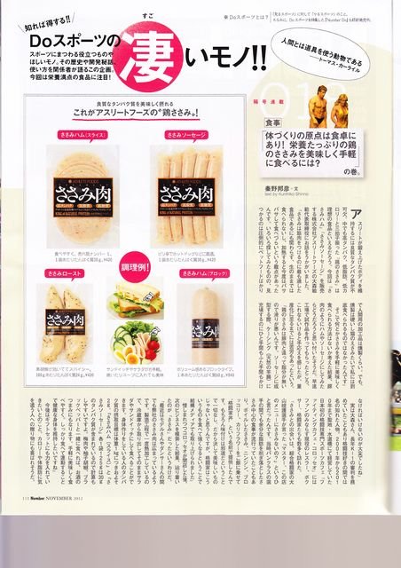 本日発売のスポーツ雑誌「Number」に、ナイスミドル協賛会社アスリートフーズの「ささみハム」「ささみソーセージ」が紹介されています。